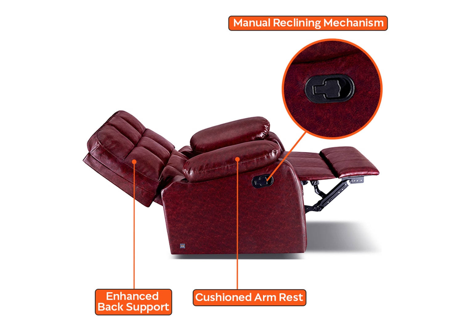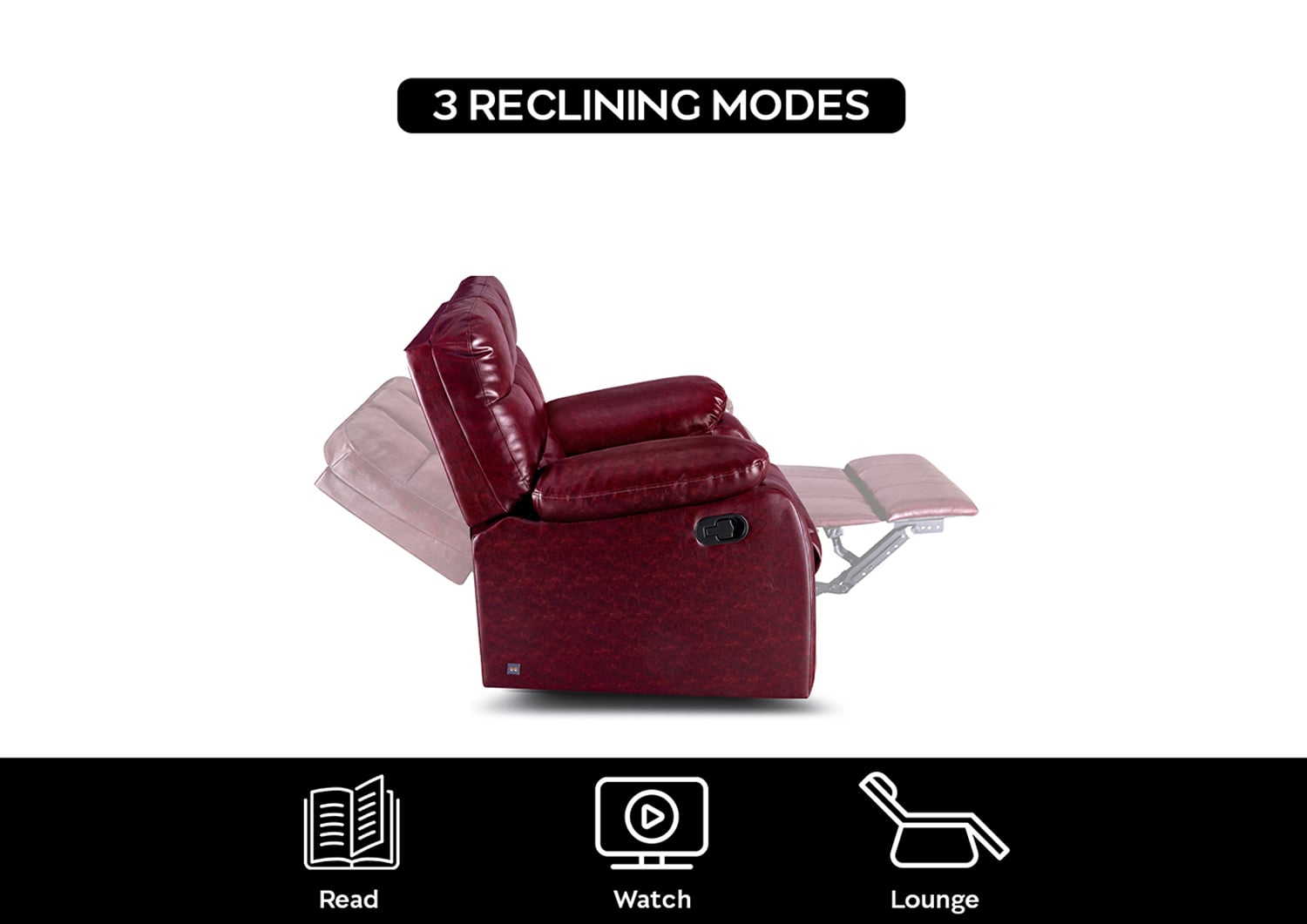 Sleepyhead RX5 - Single Seater Leatherette Manual Recliner With Durable Spring Support ( Glossy Wine Down )